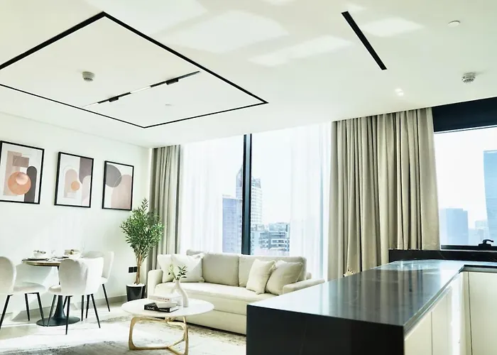 Spacious 1Br Balcony Jacuzzi Dubai appartement van 50 m² ligt in Dubai, binnen 20 minuten te voet van KidZania, en biedt spafaciliteiten zoals een Turks stoombad, een stoomcabine en een sauna. Voor reizigers die naar Dubai gaan om te skiën, biedt het appartement een skischool, een skiopslag en een skipas.